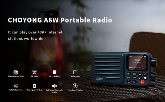 Choyong Radio A8W Portable Smart Internet Radio Receiver WIFI/4G Radio Speaker with FM,Micro-SD Card,All World Radios,for Home with WiFi,Digital Radio